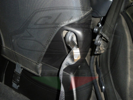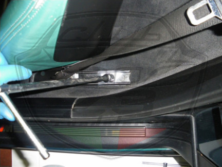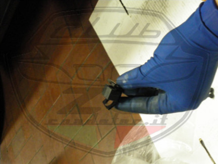 Adesso tiriamo in fuori tutta la cintura e inseriamo uno spessore per bloccarla vedi (figura 3) procediamo inclinando il sedile in avanti in modo da poter accedere al di sotto per poter staccare i 3 connettori (figura 4). Prima di scaccare i connettori ricordatevi di scolegare la batteria. Ripetiamo la stessa cosa sull altro sedile.