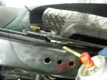 Prendiamo uno sgrassatore e un straccio,liberiamo tutta la struttura dalla sporcizia e dal grasso.Procediamo adesso per mezzo,di uno spray siliconico,a lubrificare tutti i punti di snodo del sedile (figura 17)